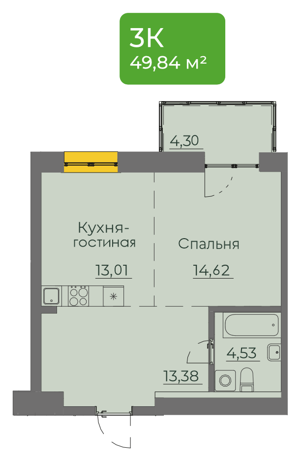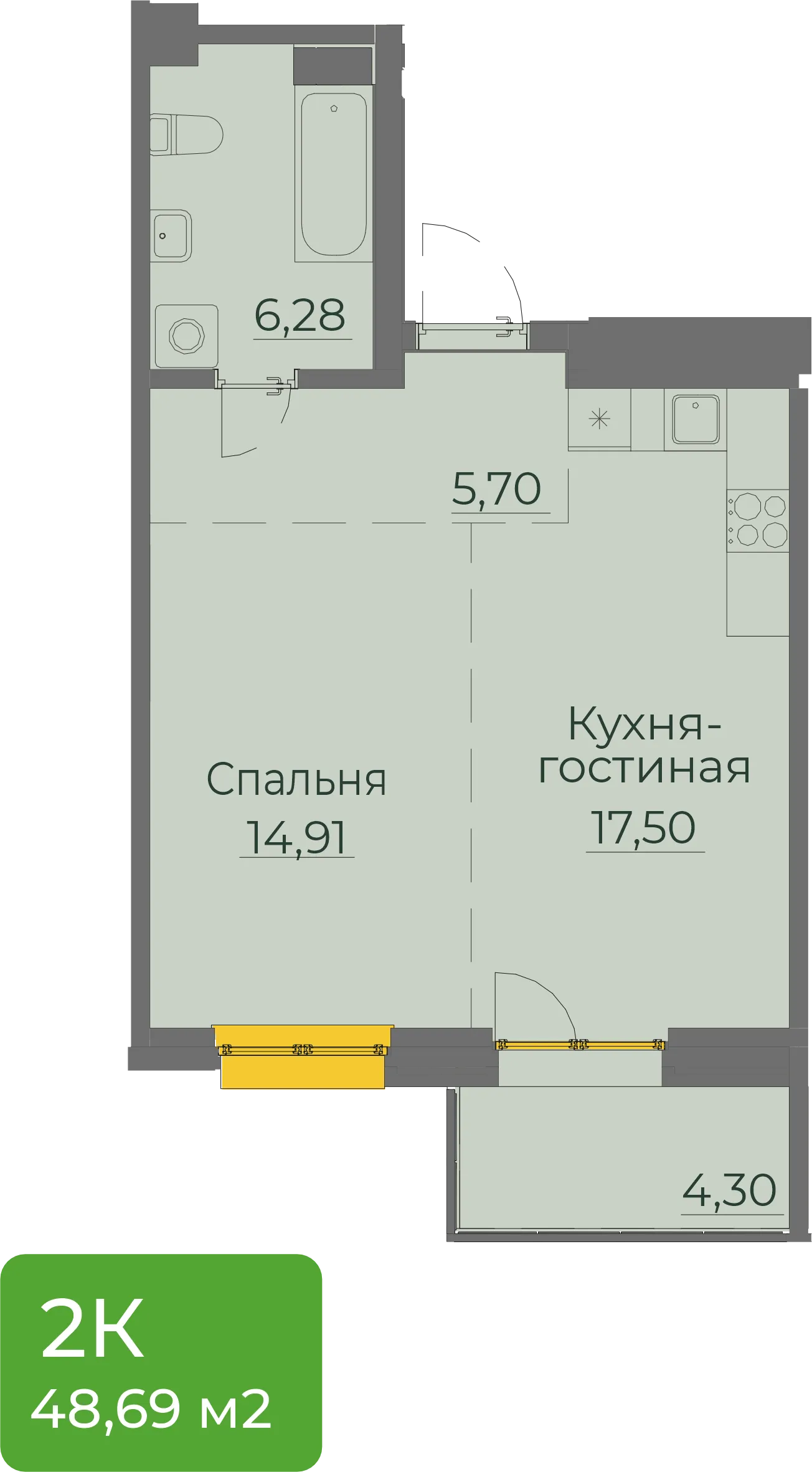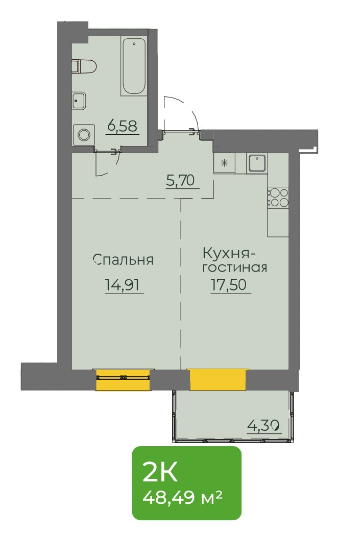 1-комнатная 49 м2