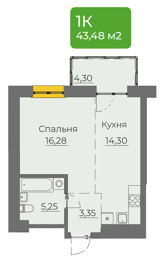 1-комнатная 43 м2