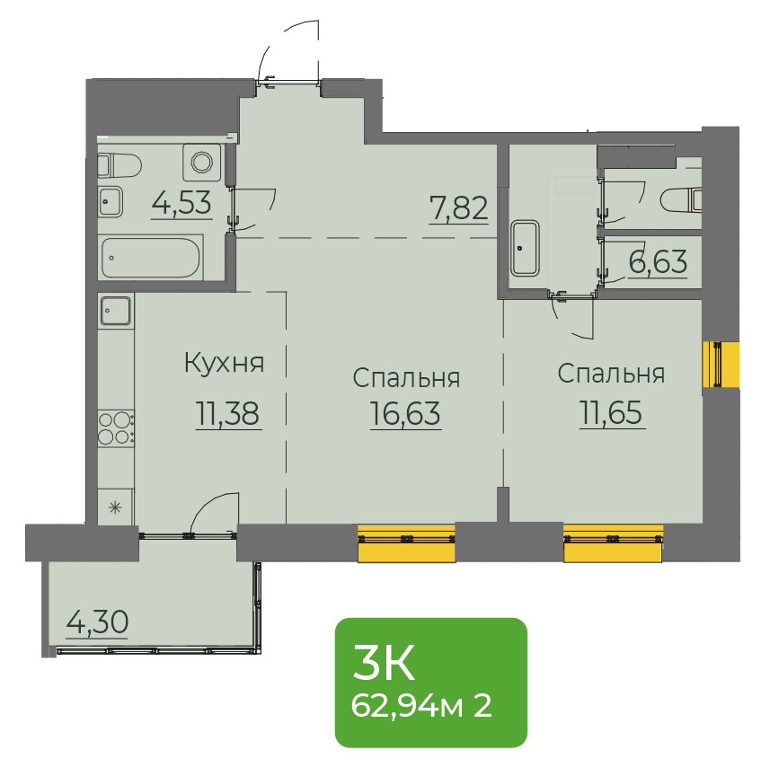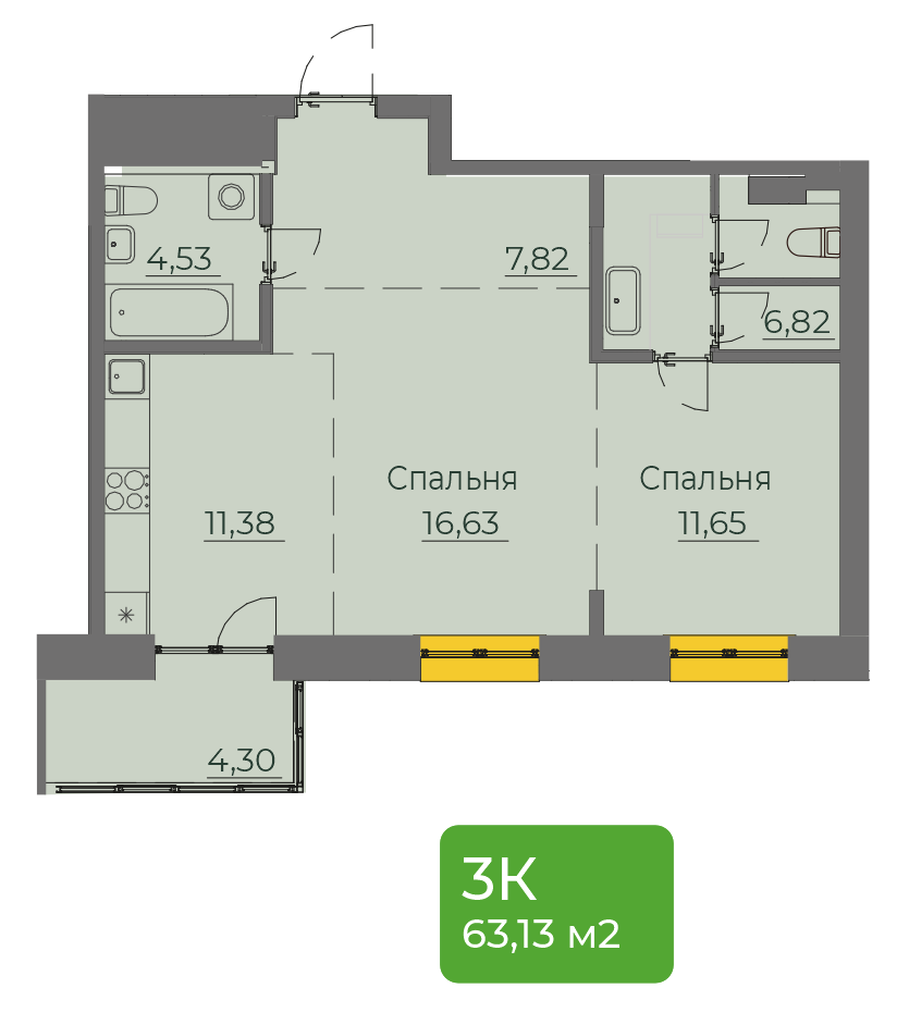 2-комнатная 63 м2