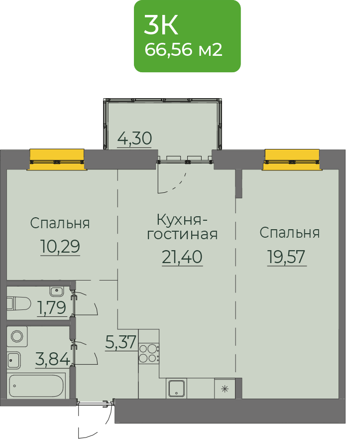 2-комнатная 66 м2