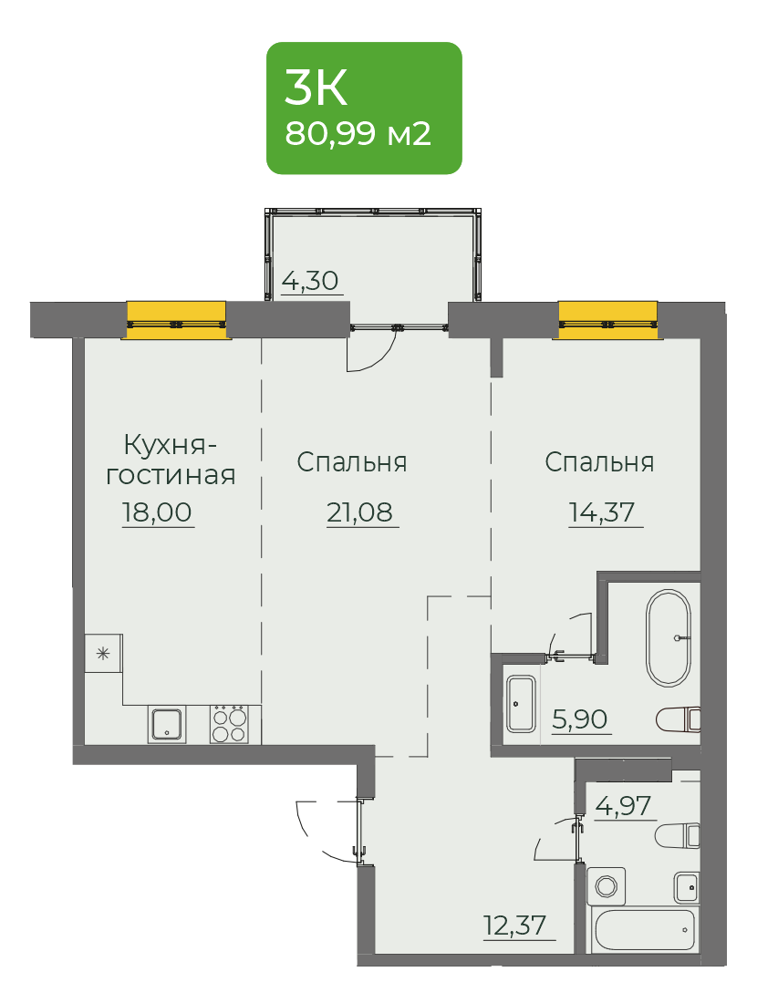 2-комнатная 79 м2