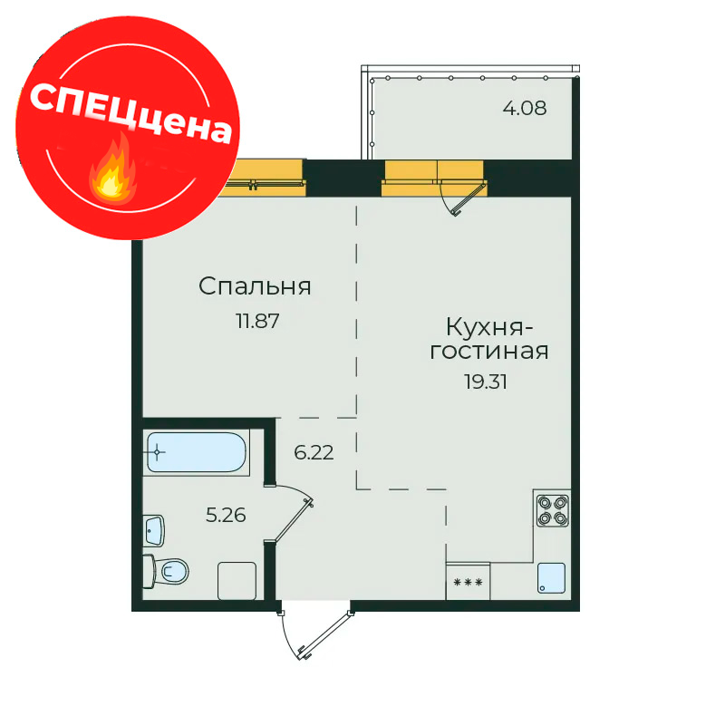2-комнатная 44.18 м2