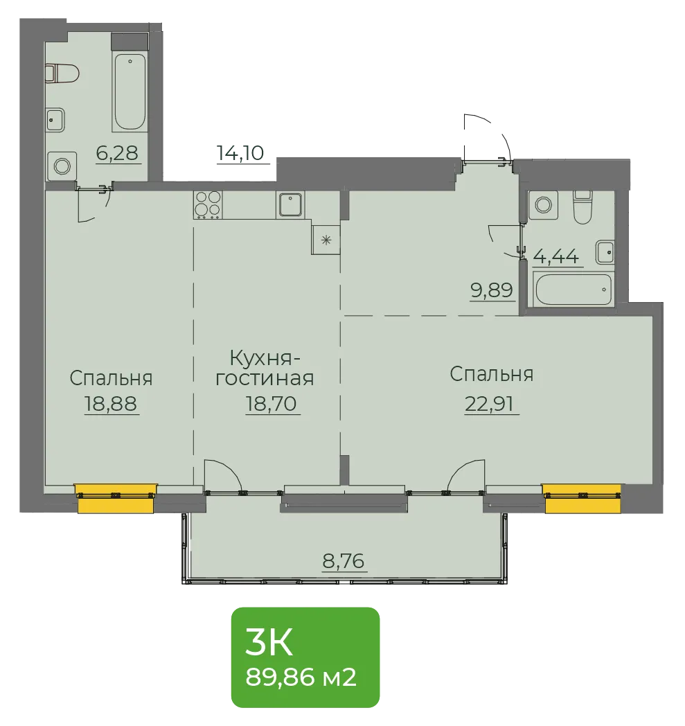 2-комнатная 89 м2