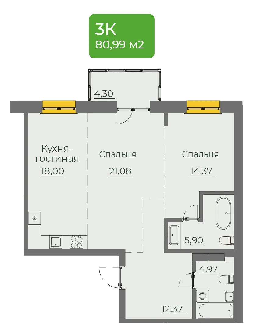 2-комнатная 81 м2
